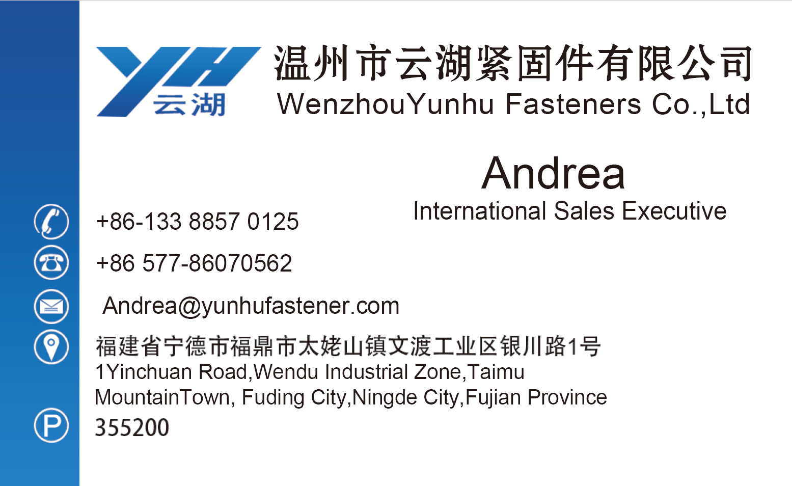 | Company Name: | WENZHOU YUNHU FASTENERS CO., LTD |