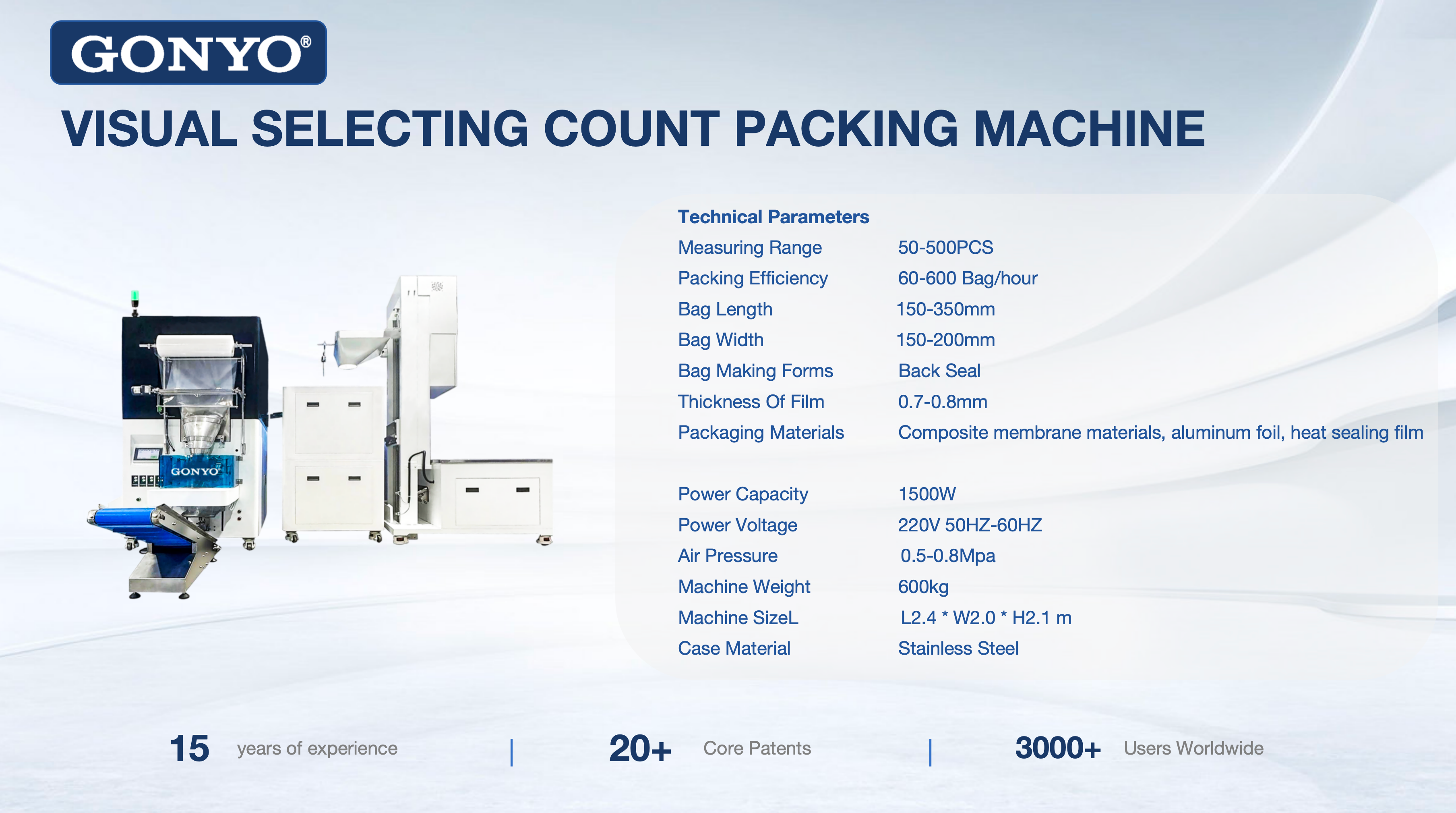 VISUAL SELECTING COUNT PACKING MACHINE GONYO