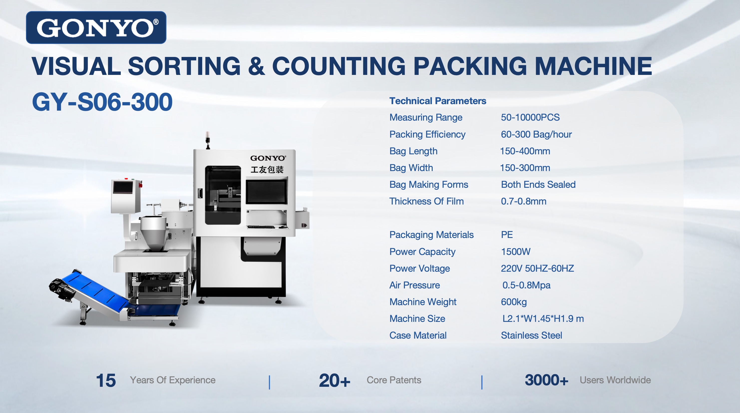 VISUAL SORTING & COUNTING PACKING MACHINE GY-S06-300 GONYO
