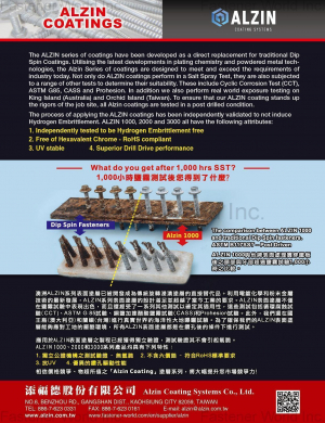 等於35年及15年的防腐耐久性(等於具XIOD®防銹塗層的鑽尾螺絲,超越了烤漆鋼板防腐蝕能力);採用XIOD®塗層的鑽尾螺絲展螺絲、華司組合螺絲、特殊螺絲、高張力螺栓及五金等。