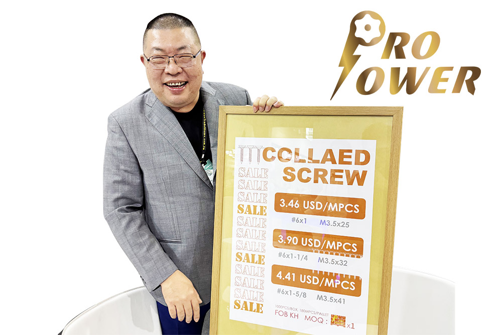 "Our price is cheap!" has been the most impressive slogan since Pro Power was founded, and such a bold marketing strategy has made many of those who are afraid of jumping into the price-cutting competition realize the typical maniacal style of Pro Power President Chris Chen, who is not afraid of taking risks and challenges. Although low price is its main selling point, Pro Power's products still achieve excellent performance and quality. Various kinds of small and large packs of household screws (e.g. wood screws, roofing screws, drywall screws, deck screws, small screws, etc.) exhibited at the show fully demonstrated Pro Power's professional ability to strike the best balance between the manufacturing cost and quality of its products.