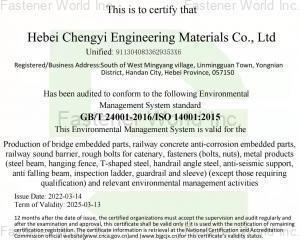 Hebei Chengyi Engineering Materials Co., Ltd. has many years of manufacturing experience, is loacted in the beautiful port city – Handan, the traffic is very convenient. With advanced equipment, senior professional and technical personnel, and advanced management system, has developed as one of the larger local standard parts manufacturers,strong technical force, enjoy higher reputation in there industry.