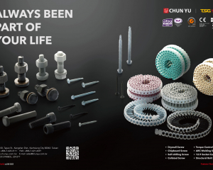 Our quality management system is implemented throughout the process from raw material to finished goods and packaging to delivery with ISO9001 and ISO/TS16949 certified. Main products are Automotive fasteners. Chun Yu's new products in year 2011: EN14399 Preloaded High-Strength structural bolting assemblies ( HR, HV, HRC ), EN15048 Non-preloaded structural bolting assemblies, EN13918 Welding Studs. With the acquisition on EN14399 and EN15048, in-house annealing and heat treatment plants, also newly equipped the CBP-276S six di six blow cold forming machine, Chun Yu shows not only the well-organized quality control system but also the capability of proces sing comprehensive range of structural metal components to dimension M30. For the Collated Screws, our patented universal strips suit any belt- type s crew gun system. Besides, the patented attachment tools fit most popular brands of screwdrivers, which combine with several advantages, such as easy installation, one-step loading, and jam elimination. " Serve the Society with the Best Quality ." is our policy. We will continually provide the most competitive products and services to feed back your wisely choice.
