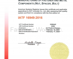 KOT UNIONTEK is committed to providing the Automotive Industry with superior mechanical components and assemblies to match the reliability and performance of your Automotive products, and also have full experience in special fasteners and C parts. We create value-added solutions for our customers through collaborative relationships, engineering expertise, and innovation. As a IATF16949 Certified factories, our expert consultants available at any time to find the best possible solutions for every requirement and to clarify individual questions directly.We provide you high-quality products to meet your individual requirements.