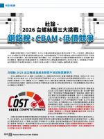 特別報導 社論- 2026台螺絲業三大挑戰: 鋼鋁稅、CBAM、低價競爭 螺絲世界雙月刊217 p.242026-3-15 特別報導 扣件博士- 了解扣件抗拉強度 ... Laurence Claus 螺絲世界雙月刊217 p.1162026-3-15 特別報導 社論- 棄拚價競賽, 走升級轉型才有出路! 螺絲世界雙月刊216 p.342026-1-15 特別報導 扣件新品大道 螺絲世界雙月刊216 p.322026-1-15