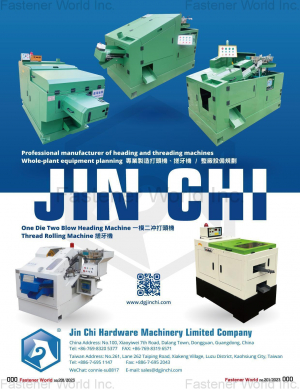 具類、自行車類、五金製品類、電子電器類、機車汽車類、建築類、電動工具格的品質控制,設計製造生産各種螺絲整厰設備,更配合業界精英之...