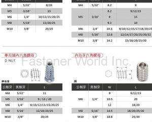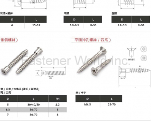 組合螺絲,M6大扁頭空心釘,M6大扁頭螺絲,M4華司頭空心釘,M4華司頭螺絲,M4平頭空心釘,M4平頭機械牙螺絲,內六角孔管牙,內六角螺絲,韋式牙螺絲5/32",塑膠對鎖公母螺絲,木螺絲,高低牙螺絲,鈕釦頭螺絲,歐洲螺絲,傢俱螺絲,平頭沖孔螺絲,四爪,牙條