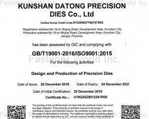 十余年的发展历程,公司一直秉承“格守品质承诺,追求客户满意,持续改进,永不满足”的质量方针,拥有坚实的标准件模具与非标件模具设计与制造能力,积累了大量紧固件产品及杆轴类零件模具设计方案及制造经验,可完美适配于春日、正侑、标俐、长测、思进、滕工等国产冷徽机及部分国外冷镦机(萨克玛、国民、内德史罗夫)及部分其他成型设备。优秀的产品与服务赢得了全国各地大中小近四百余家客户的一致认可,并与其中众多一线厂商达成长期供货协议。公司坚持选用知名供应商一流原材料,从源头保证产品质量,公司内部有效贯彻执行“7S运动管理”与1S09001:2015质量体系,不断提升员工能力与素质,确保产品质量稳定。