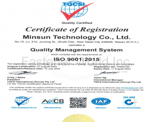 敏尚企業在1999年通過ISO9001國際品保認證, 秉持「有良好的品質才有美好的明天」及「良好的品質是最好的業務員」的經營理念,以追求世界級一流品質為目標並向前邁進。為了擴大產能, 更於2000年在台南擴建2,000多坪新廠房,投資總額約新台幣壹億多元。除產能擴充外,敏尚企業也致力於提供海外客戶全方位的服務,目前我們已在上海設立業務及服務據點以開拓中國大陸的事業版圖。